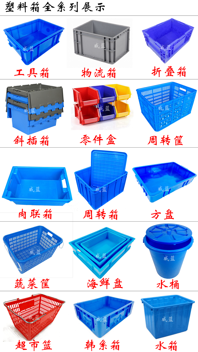 武汉威蓝塑业有限公司是从事塑料托盘(栈板地台板或垫仓板卡板)缠绕膜塑料周转箱零件盒垃圾桶生产的专业厂家!本公司主要产品有百余种塑料托盘(栈板地台板或垫仓板卡板)、塑料垃圾桶(箱)、塑料周转箱、零件盒,面条箱,塑料整理箱,水箱,周转筐,水桶,弹盖垃圾桶,保温箱,超市篮、平盘,静音手推车,方盘可倒置周转箱,仪表箱,海鲜盘,网眼箱,冷冻盘,榨水车等等塑料制品!本产品经济耐用,无钉无刺、无毒无味、耐酸碱防霉变!本公司在二十多年的生产销售服务中不断壮大,建立了相当完善的售后服务体系。