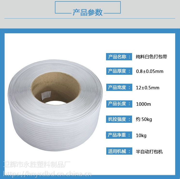 近年来,本企业不断引进世界一流的生产设备和先进技术,陆续研发出,宽:5mm-20mm,厚:0.45mm-1.8mm,长度:2000m、2500m、3000m、4000m以及7000m全自动、半自动、各类PP环保打包带。广泛应用于金融、印刷、包装、烟草、化工、电子、服装、陶瓷等行业。