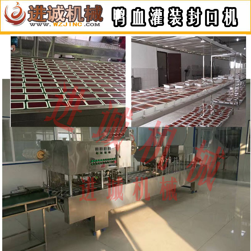 [0008]针对现有技术存在的不足,本实用新型的目的在于提供一种自动化、机械控制、安全卫生、灌装后鸭血形状规则的鸭血灌装机。