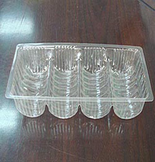 吸塑形式:托盘/内托是一类起盛装,分隔,支撑,防震,衬托作用的吸塑产品,日常生活中见到的如:饼干、月饼、口服液、化妆品,手机包装的内部塑料盒,工业生产上常用作存放,运输零部件的塑料托盘。