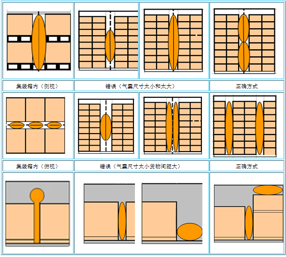 集装箱充气袋可以有效的防止在卡车、集装箱或铁路运输中货物的移动。它充分填充货物之间的空隙,吸收货物因摇晃而产生的力,减缓并吸收震动,保护货物以免在运输中损坏,比其它的支撑填充保护物效果更好。