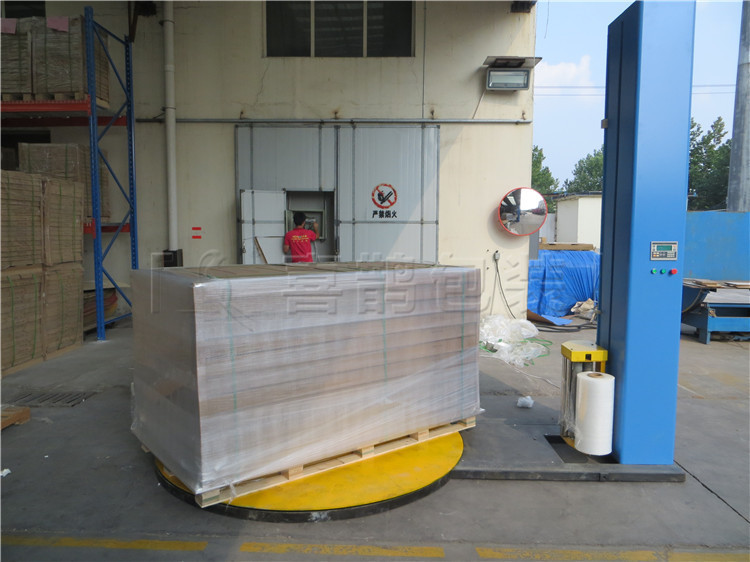 3、木板托盘缠绕包装机操作简单:只需按自动运行按钮,即可完成整个包装过程。