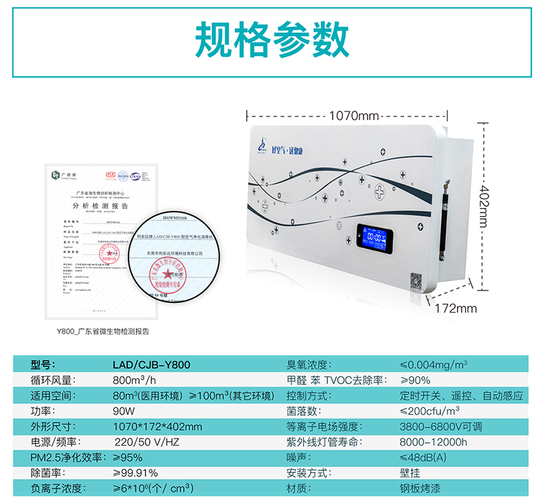 壁挂式等离子空气消毒机--Y800型(豪华金属平板)