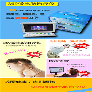 2.电子推拿:369微电脑治疗仪运用特定电脉冲模拟传统推拿疗法,具有推、拿、按、捶、振、揉等多种模拟手法,能有效疏通经络、行气活血、镇静止痛。对多种急慢性病如扭伤、关节炎、颈椎病等具有特殊疗效。