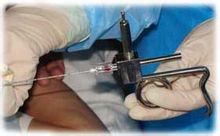 医生在检查患者身体状态良好进行粒子射入的时候,常用的是国产植入枪,此设备分为枪体、手柄、可插入枪体中的粒子仓以及植入针等等。