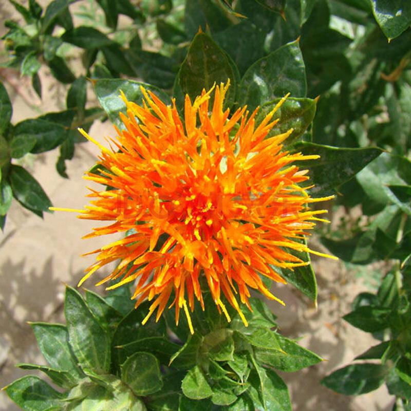 头状花序多数,在茎枝顶端排成伞房花序,为苞叶所围绕,苞片椭圆形或卵状披针形,包括顶端针刺长2.5-3厘米,边缘有针刺,针刺长1-3毫米,或无针刺,顶端渐长,有篦齿状针刺,针刺长2毫米。总苞卵形,直径2.5厘米。总苞片4 层,外层竖琴状,中部或下部有收溢,收缢以上叶质,绿色,边缘无针刺或有篦齿状针刺,针刺长达3毫米,顶端渐尖,有长1-2毫米,收溢以下黄白色;中内层硬膜质,倒披针状椭圆形至长倒披针形,长达2.3厘米,顶端渐尖。全部苞片无毛无腺点。小花红色、桔红色,全部为两性,花冠长2.8厘米,细管部长2厘米,花冠裂片几达檐部基部。
