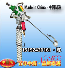 MQT-130-2.0气动锚杆钻机 MQT-130/2.0型气动锚杆钻机 ★MQT-130/2.0型气动锚杆钻机用途: MQT-130/2.0型气动锚杆钻机主要用于煤矿岩石硬度≤f10的煤巷、岩巷锚杆、锚索支护钻孔,并可搅拌和安装树脂类锚杆、锚索,对于带阻尼螺母的锚杆,MQT-130/2.0型气动锚杆钻机可在搅拌时直接上紧螺母,实现锚杆搅拌、安装一次完成,并满足初锚预紧力的要求。 ★MQT-130/2.0型气动锚杆钻机特点: ? MQT-130/2.0型气动锚杆钻机最大程度采用工程塑料材料,重量轻、方便操作。 ? MQT-130/2.0型气动锚杆钻机采用大规格马达作动力,功率重量比更大,使用寿命更长。 ? MQT-130/2.0型气动锚杆钻机参数匹配更合理,在最佳钻孔速度附近时,钻机达到最大输出功率。 ? MQT-130/2.0型气动锚杆钻机推进部分采用新型玻璃钢气缸,安全防爆、轻便灵活。 ? 采用专利技术的新型水阀,能适应煤矿超高地表静压水。 MQT-130/2.0型气动锚杆钻机采用新型排气消音装置,使钻机噪音大大降低,改善了井下工作环境。 MQT-130-2.0型气动锚杆钻机主要用于煤矿岩石硬度≤f10的煤巷,岩巷锚杆,锚索支护钻孔,并可搅拌和安装树脂类锚杆,锚索,对于带阻尼螺母的锚杆,可在搅拌时直接上紧螺母,实现锚杆搅拌,安装一次完成,并满足初锚预紧力的要求。 MQT-130气动锚杆钻机 MQT-130-2.8型气动锚杆钻 MQT-130-2.8型气动锚杆钻机广泛适用于岩石硬度≤f10的巷道,特别适应煤巷的锚杆支护作业,既可钻顶板锚杆孔,又可钻锚索孔,还可搅拌和安装树脂药卷类锚杆,锚索,无需其他设备,即可实现锚杆螺母一次安装拧紧,达到初锚预紧力的要求。 MQT-130/2.0型气动锚杆钻机特点:体积小,重量轻,操作简单,维护方便。齿轮式气动马达,运转稳定,可靠性高。新型玻璃钢气腿设计,安全防爆,使用寿命更长。 30kg道夹板 液压弯道器 立式扳道器 MQT-130/2.0型气动锚杆钻机主要技术参数:工作气压 Mpa 0.4-0.63 额定气压 Mpa 0.5 额定转速 r-min 206 额定转矩 N.m 130 失速转矩 N.m 220 空载转速 r-min ≥ 560 耗气量 m3-min 4.5 最大推力 KN 8 冲洗水压力 Mpa 0.6-1.2 MQT-130/2.0型气动锚杆钻机噪声 dB(A) ≤ 95 钻尾六方尺寸 mm 19:22 锚杆机系列规格号 MQT-130-2.8-A MQT-130-2.8-B MQT-130-2.8-C 整机最大高度 mm 2457 ± 50 3057±50 3657±50 整机最小高度 mm 1126 ± 50 1276±50 1426±50 整机重量 Kg 53 55 57