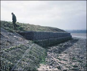9、在砌筑好的石笼网上铺填10~15 cm的腐植土,以便植被生长。