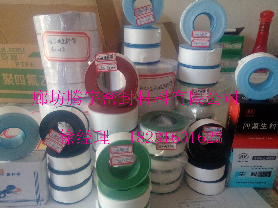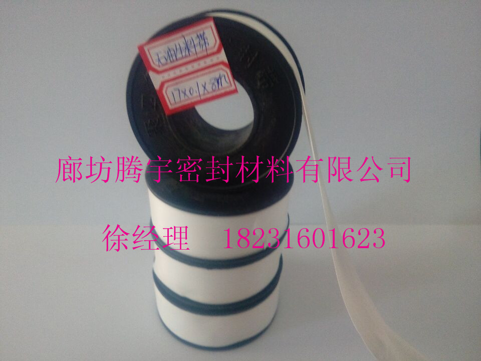 又称密封带,止泄带。是由聚四氟乙烯分散树脂经糊状挤出、压延而成的不含任何添加剂的带状制品。呈白色、表面光滑,质地均匀,具有优异的耐热性、耐腐蚀性,并且自粘性、贴合性好,有很好的密封性。可广泛用于纯氧、煤气、强氧化剂、强腐蚀性介质和高温蒸汽等管道螺纹丝口密封以及泵、阀、设备形状复杂的填充密封。