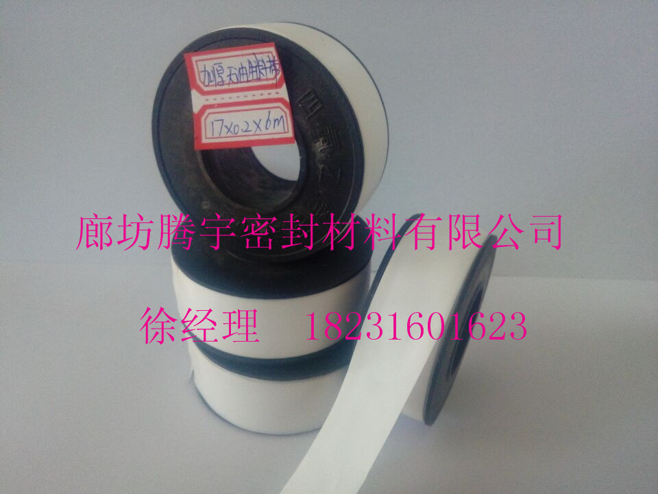 又称密封带,止泄带。是由聚四氟乙烯分散树脂经糊状挤出、压延而成的不含任何添加剂的带状制品。呈白色、表面光滑,质地均匀,具有优异的耐热性、耐腐蚀性,并且自粘性、贴合性好,有很好的密封性。可广泛用于纯氧、煤气、强氧化剂、强腐蚀性介质和高温蒸汽等管道螺纹丝口密封以及泵、阀、设备形状复杂的填充密封。