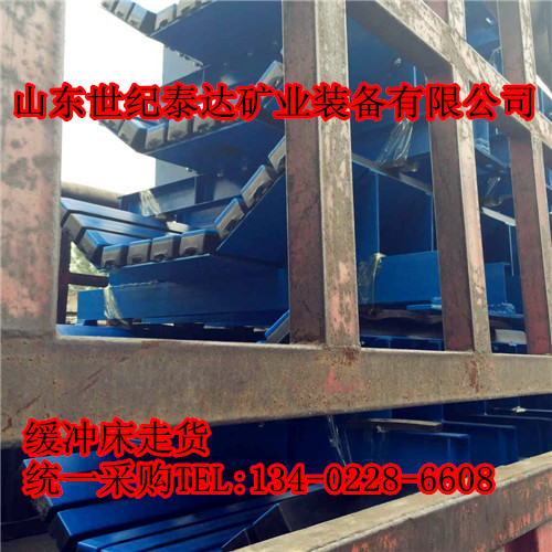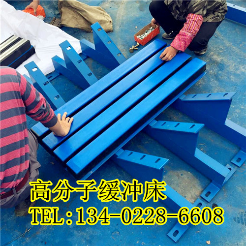 缓冲床橡胶采用进口天然橡胶、橡胶弹性高、含胶量大、橡胶密实度高、抗拉强度大、能最大程度上吸收下落物料的冲击力。床体表面采用超高耐磨分子材料,分子量大于650万,光滑表面,摩擦系数小,耐磨性好,使得输送带运行时的摩擦力降到最低,广泛用于矿山开采,矿井下巨型煤块输送。