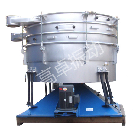 ★基本的回转运动与人工筛分相类似。偏心率从25到40mm可调,低速V型皮带驱动从120到360rpm可调.★每一种产品的停留时间可以通过摇摆筛的径向与切角朝驱动轴线方向进行调整。★因此建立水平与抛掷三维翻滚运动。物料从中心到外缘在整个筛面上均匀分散,从而以螺旋运动往轴向传播。细小颗粒从而完成了整个筛分过程。★水平与垂直加速度随着粒子的运动而增加,接近筛孔尺寸的颗粒随之成功分离;较大颗粒被运到出口处,出口处由一个可调节的导向装置控制流量,该导向装置是控制物料停留时间的另一个因素。★ 此次过程在每筛层之间重复进行。