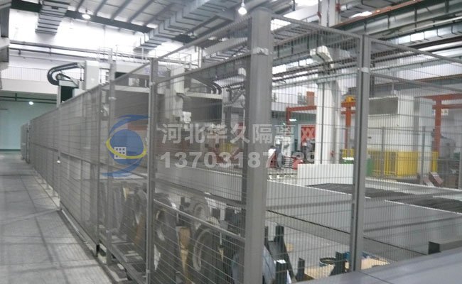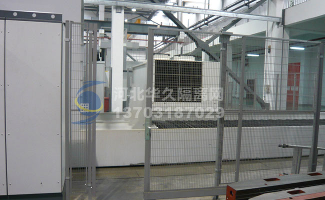 工厂围栏网是很多工厂都需要安装的一种分割性护栏网产品。根据不同的生产车间分割需要,工厂围栏网的设计安装也会有很大的不同。一般性的工厂围栏网需要护栏网厂家到实地测量才能获产品的具体尺寸。图片展示的这种工厂围栏网是比较普通的一种产品。网片才有优质金属丝焊接成方孔。然后焊接在金属方管框架上面,最后采用浸塑防腐处理。达到很好的防腐效果。同时还设计了双开门,门和柱子之间都是浸塑链接在以前的。这款工厂围栏网最需要介绍的还是网片的高度,高度为两米。虽然网片的上方到墙的顶部还有一定的距离,主要起到的是分割作用,对生产机器的一种保护作用。