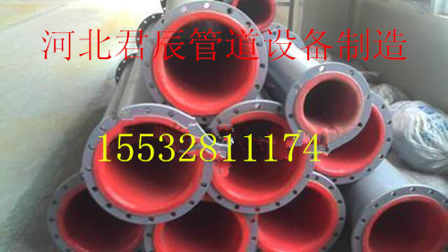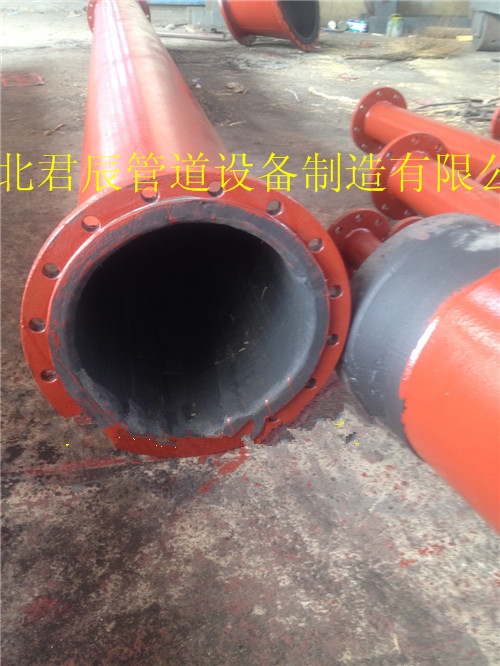河北君辰管业衬胶名企。在华北地区数得上是一级单位,主要供应衬胶管道领域有:尾矿耐磨输送管道、化工管道、制药厂、冶金、电力管道、污水处理管道、等等。电厂衬胶管道它的耐磨、耐酸碱、耐冲击、耐高温性能极强,抗老化!公司另外还生产、衬胶弯头、三通衬胶、衬胶异径管、罐体衬胶、设备衬胶、叶轮衬胶、槽钢衬胶等产品,在做完后都必须经过高温硫化罐蒸汽硫化12个小时,出炉后经过电火花检测,不漏电,表面修补完整后,方可出厂!在质量上您尽管放心,十年老厂!值得信赖!