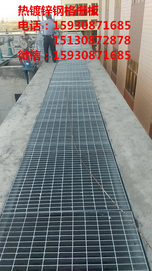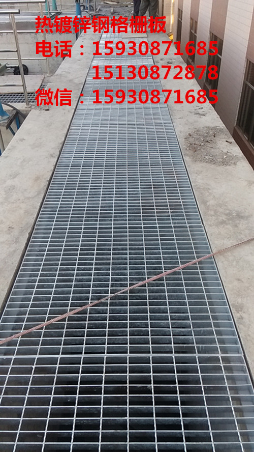 热镀锌钢格板是由负载扁钢和横杆按一定间距经纬排列,在高压电阻焊机上焊接而成原板,经切割、切口、开孔、包边等工序深加工而成客户要求的成品。