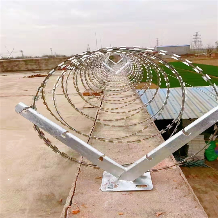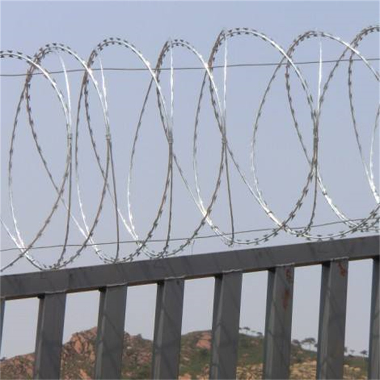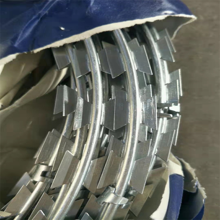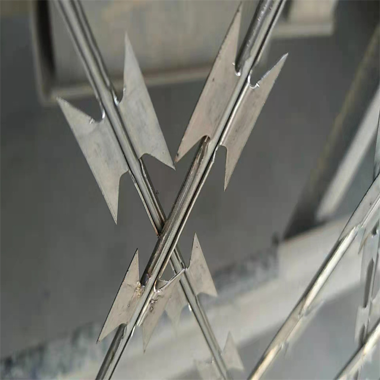 电镀锌刀片刺绳也称为刀片刺丝、刀片刺网,是一种防护网。刀片刺绳具有美观、经济实用、防阻好、施工便利等特点,目前,刀片刺绳已被应用于许多的工矿企业、园林公寓、边防哨所、领域、建筑物和其他设施。