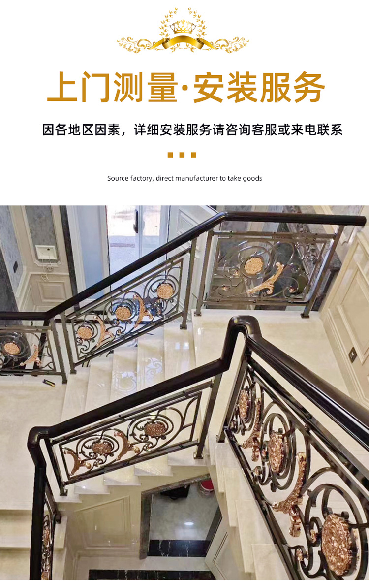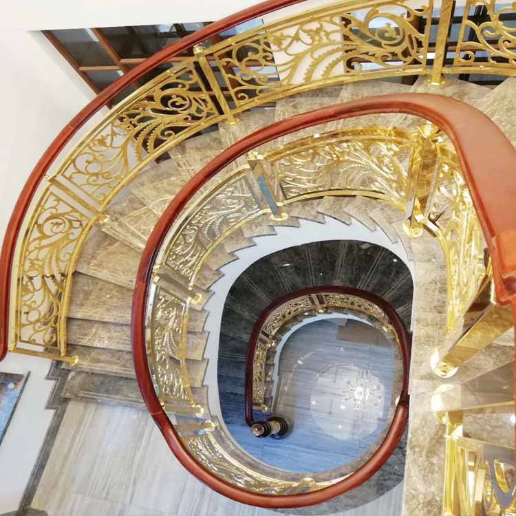 别墅铜质旋转楼梯 古典欧式铜艺扶手栏杆设计再现光辉