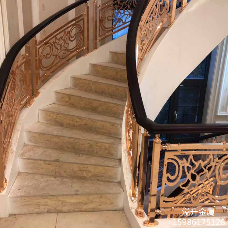 金华别墅家用铜艺楼梯 中式旋转弧形铜护栏扶手
