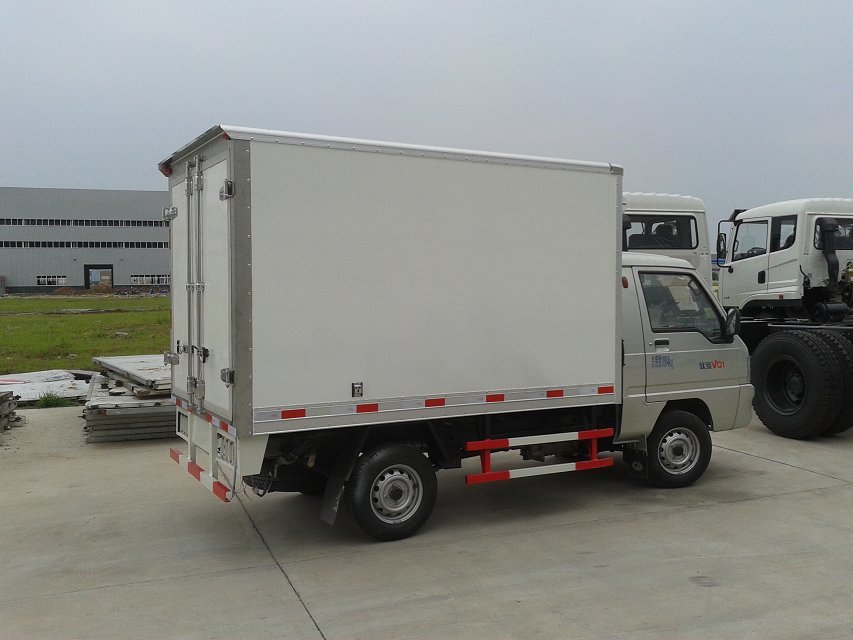 冷藏车厢设计主要是气密性能和保温性能,通常冷藏车的结构采用三层结构,内外蒙皮采用复合材料,如玻璃钢板,彩钢板,铝合金等材质。内板材质应运输货物不同而采取不同材质,最贵的内材板应该是不锈钢板。中间夹层为保温材料,主要采用聚氨酯发泡材料。四侧用高强度胶将玻璃钢板与聚氨酯泡沫材料粘合在一起,形成一种封闭性板块。