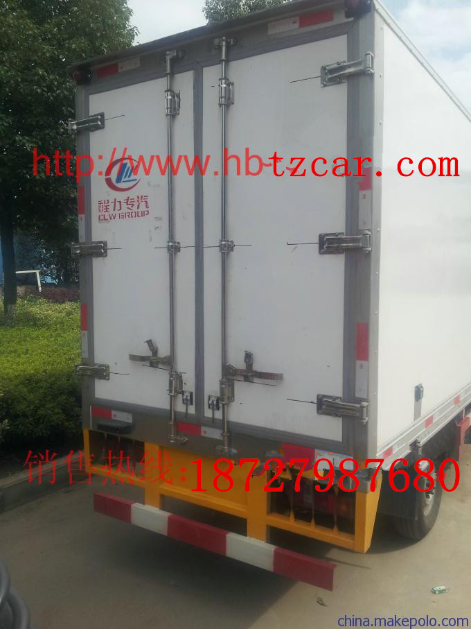 冷藏车厢设计主要是气密性能和保温性能,通常冷藏车的结构采用三层结构,内外蒙皮采用复合材料,如玻璃钢板,彩钢板,铝合金等材质。内板材质应运输货物不同而采取不同材质,最贵的内材板应该是不锈钢板。中间夹层为保温材料,主要采用聚氨酯发泡材料。四侧用高强度胶将玻璃钢板与聚氨酯泡沫材料粘合在一起,形成一种封闭性板块。