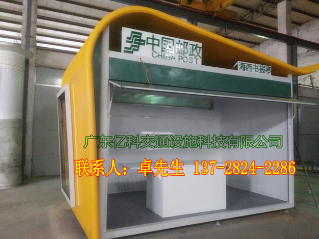 报刊亭厂家广东亿科交通设施科技有限公司专业生产报刊亭,售货亭,岗亭,收费亭,候车亭,自行车棚亭等制作经验是广东销量领先品牌。