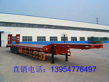 出口低平板半挂车,低平板半挂车价格,低平板半挂车车载部位无栏板,用途广泛,主要用于中长途货运运输。系列半挂车车架为穿梁式结构,纵梁采用平直式活鹅颈式。腹板高度从400mm至550mm,纵梁采用自动埋弧焊焊接,车架采用喷丸处理,很亮穿入纵梁并焊接整体。串联式干板弹簧和悬挂支座组成,结构合理,具有较强的刚性和强度,用来支承载荷缓冲击。低平板半挂车通常用来运输重型汽车(如牵引车、大客车、专用汽车等)、轨道车辆、矿用机器林业机器、农业机器(如挖掘机、推土机、装载机、铺路机、起重机等)及其他重载货物,其重心越低,稳定性和安全性越好,运输超高货物和通过头顶障碍的能力就越强。低平板半挂车结构和装载 低平板半挂车通常采用凹梁式(或者井型)车架,既车架前段为鹅颈(鹅颈前段的牵引销与牵引车上的牵引鞍座相连,鹅颈后端与半挂车架相连),中段为货台(车架最低部分),后端为轮架(含车轮)。在往低平板半挂车上装载机械设备时,通常是从半挂车后端装载机械设备,即采用从后轮架上 面移动机械设备或者将车轮移除的方式, 然后再将机械设备固定在半挂车上。低平板式半挂车行走结构使用高强度国际钢材质,整车自重轻,并保障其抗扭曲、抗震、抗颠簸能力、满足不同的路面承载能力。中国重型汽车集团梁山四通专用汽车有限公司生产和出口各种低平板半挂车,国内知名品牌,质量保证!欢迎各地新老用户来人来电 ,欢迎前来洽谈.
