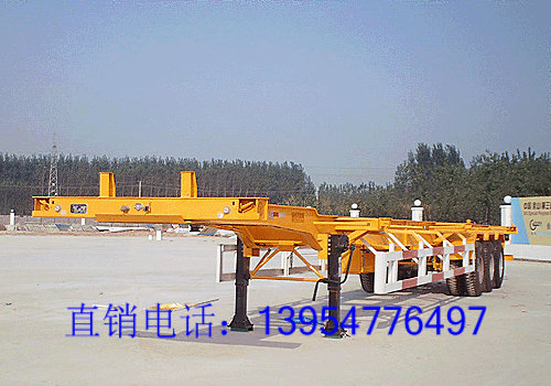 出口集装箱半挂车,集装箱半挂车价格,集装箱半挂车载货部位为集装箱结构的半挂车。主要用于船舶、港口、航线、公路、中转站、桥梁、隧道、多式联运相配套的物流系统。1、专门用于各种集装箱的运输。能长期的反复使用,具有足够的强度。 2、使用集装箱转运货物,可直接在发货人的仓库装货,运到收货人的仓库卸货,中途更换车、船时,无须将货物从箱内取出换装。3、可以进行快速装卸,并可从一种运输工具直接方便地换装到另一种运输工具。4、便于货物的装满和卸空,满足客户的个性化需求。根据客户需要工装保证,质量稳定,性能可靠。集装箱半挂车是载运集装箱的专用运输挂车。集装箱运输发展初期,因集装箱载重量较小,数量不大,多用普通载货汽车载运。20世纪60年代以来,随着集装箱运输的迅速发展,各国相继研制成专门运输集装箱的汽车。集装箱挂车装载部位的尺寸按标准集装箱尺寸确定,并在相应于集装箱底部四角的位置上设有固定集装箱的扭锁装置。载运集装箱的专用运输挂车。在装载部位的四角设有固定集装箱的扭锁装置。通常采用半挂式、全挂式和双挂式,以半挂式为多。半挂式又有平板式和骨架式之分,前者有平板货台,也可用来装运普通长大货物;后者无货台,集装箱装到底盘骨架上,由扭锁装置固定成为半挂车的强度构件。中国重型汽车集团梁山四通专用汽车有限公司生产和出口各种集装箱半挂车,国内知名品牌,质量保证!欢迎各地新老用户来人来电 ,欢迎前来洽谈.