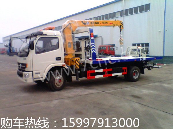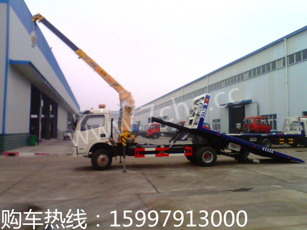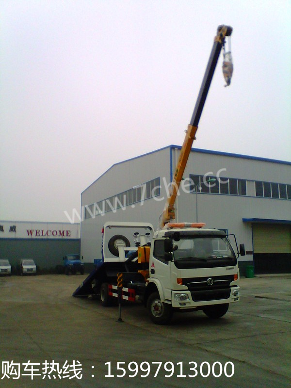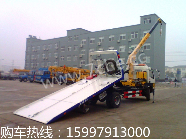 3、控制绞盘操纵杆,把汽车拉上平台,并控制钢缆上的j形钩距离绞盘大于0.4m。当绞盘受负荷时,切勿将绞盘的手动控制离合器脱开,这样会损坏绞盘。注意:在使用链勾利用绞盘牵引事故车时,特别是底盘较底的小轿车,要非常小心不要损坏被拖车的部位,以免引起不必要的麻烦。
