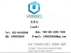 主营:进口啤酒果汁饮料牛奶食品 ------------------------------------------------------------------------------- 进口部联系人:??咨询热线????王女士?18322597829 ??QQ:13602256542 ? 天津饼干进口报关,天津饼干进口报关代理,天津饼干进口清关,天津饼干进口报关公司,天津饼干进口清关公司,天津饼干进口清关,天津饼干进口清关代理 ? vanhang供应链管理有限公司 ? ——打造全球进口门到门,中国优秀品牌! ? ?TO build:“china’s leading brand of global import door to door service” ? vanhang供应链管理有限公司弘扬“专注-专业”精神。在行业内首先提出“专注于进口”创新理念,以客户需求为导向,打破行业的习俗和假设,探索出新的服务、新的商业模式。把智慧和资源凝聚到“全球进口门到门”服务上,zui大限度地优化进口物流供应链方案,服务贯穿整个国际贸易流程:一般贸易代理、国际贸易结算、进口物流配送、专业进口清关、专业仓储。 -------------------------------------------------------------------------------? 进口部联系人:王女士??手机?:18322597829?? ? 食品进口清关时效: 1)进口报关公司备案和收货公司备案:1-3个工作日。 2)中文标签制作和备案:5-7个工作日 3)报检,报关,出税单交税:3-7个工作日 4)抽样查验:7-10个工作日 5)贴中文标签、出卫生证:7-10天 6)送货:1-2天 ?? ------------------------------------------------------------------------------- 联系人:王女士86-18322597829??QQ:1360225642 总公司地址:上海市浦东新区张杨路3611号金桥国际商业广场6座906-908单元 天津分公司地址:天津市和平区解放北路188号信达广场3009-3011单元