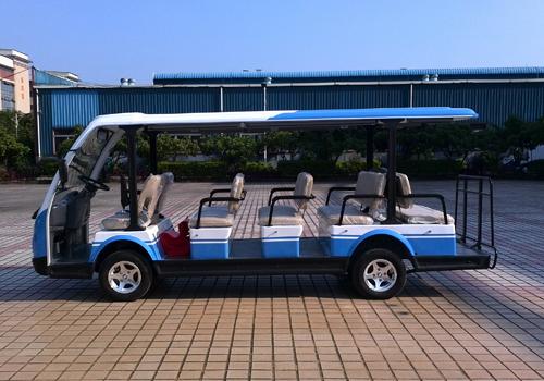 朗晴豪华11座电动老爷车大弧形流线型设计,复古工艺搭载欧式窗花,古典与现代、怀旧与新潮的完美结合;前窗视野空前广阔,加长车身,豪华加宽PU座椅,乘坐空间更加宽敞、舒适,真正VIP尊贵体验;配置交流驱动动力系统、免维护蓄电池组,动力更强劲、驾乘更安全,维护更方便。