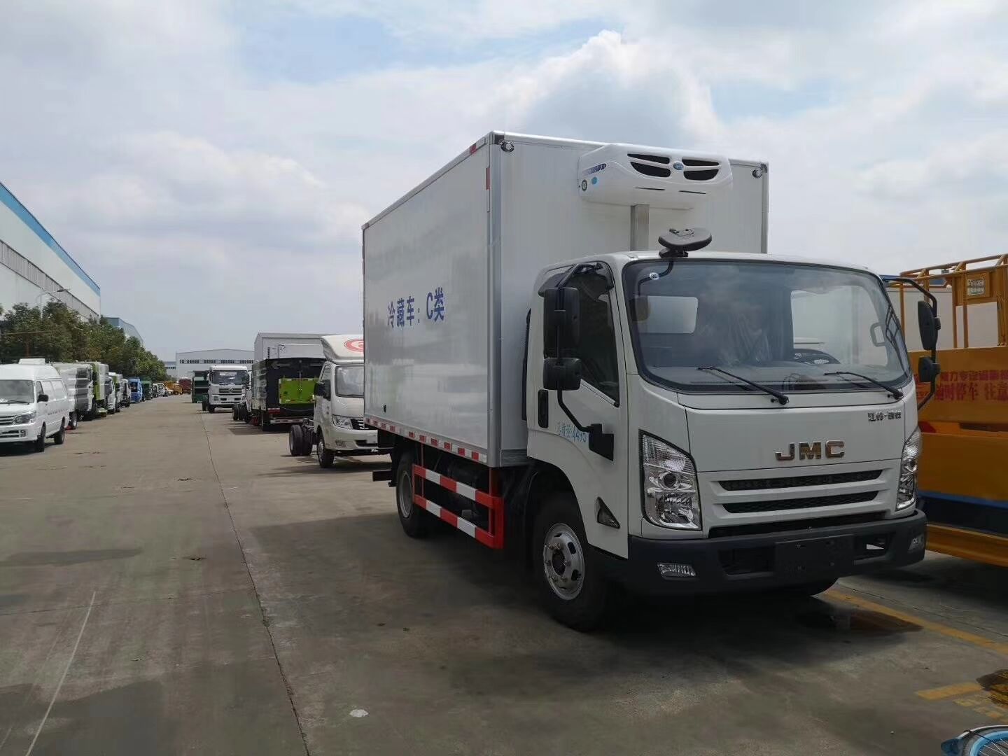 江铃凯锐800HP4米蓝牌宽体重载冷藏车,底盘型号:JX1045TGB25,整车型号:CLW5045ZLCJ5,外形尺寸:5995*2350*3400(mm),箱内尺寸:4000*2180*2100(mm),康明斯155马力发动机,六档变速箱,断气刹,遥控中控锁,8.25钢丝胎,原厂空调助力,双压缩机支架。冷藏车厂家直销热线:13971799462(微信同号)