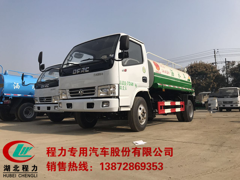 2、东风多利卡洒水车(6吨—8吨)该车采用东风朝阳120马力柴油发动机和东风康明斯140马力柴油发动机,7.50-16轮胎,带方向助力,带增压,不带空调,汽刹,5档变速箱,2.2吨前桥, 5吨后桥,整车外形尺寸:长×宽×高(mm) 6995×2300×2550,总质量(kg):11495,额定质量(kg):4300,整备质量(kg): 7000,该车罐体有效容积:6吨-8吨,带免征公告。