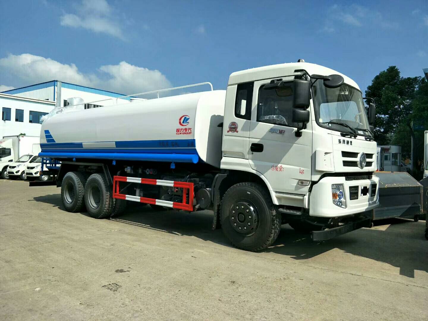 东风后双桥洒水车:康明斯210马力发动机,10.00R20钢丝胎,罐体容积20立方,带方向助力,ABS。罐体采用武钢优质钢材制作,专用功能为:前冲后洒,带侧喷,罐体后带工作平台,平台上安装绿化洒水高炮,并有多种雨状可调节(大雨、中雨、毛毛雨、雾状),大功率专用洒水泵,泵可自吸自排,带自流阀,带消防接头,带过滤装置。