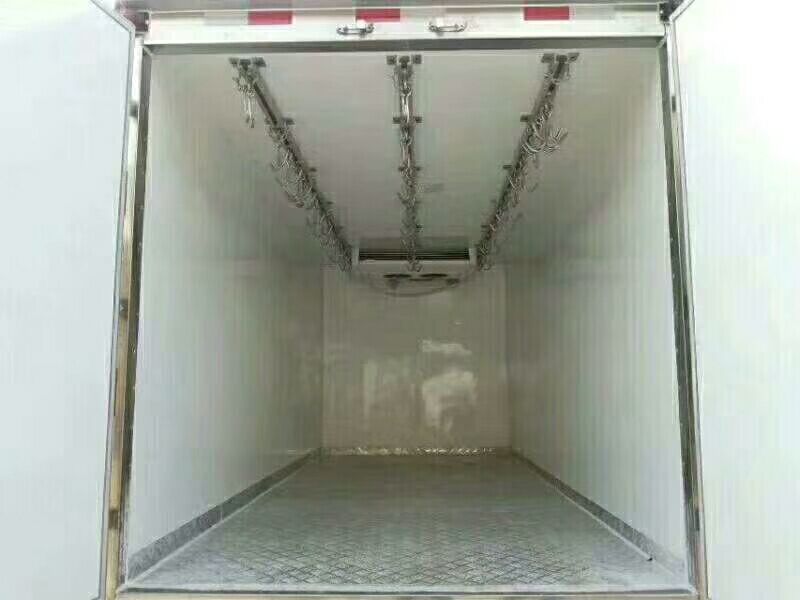 福田欧马可S3排半肉钩冷藏车,整车尺寸:5995×2250×3230(mm) 厢体尺寸:3700×2100×2000(mm) ,ISF3.8S5141发动机。驾驶室带原装空调、定速巡航、离合助力、ABS、中控锁、电动玻璃、遥控钥匙。厢体内外玻璃钢板制作,中间8CM厚聚氨酯保温板,铝花纹底板,厢体顶部加装3排肉钩导轨,右侧开单侧门,装汉雪L-Z35制冷机组,厢内温度可达到-15度,购车热线:13971799462(微信同号) 联系人:李艳经理