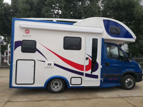 这款C型房车是典型鹅头房车,外观颜色采用的黑白灰红蓝五色,颜色搭配合理相得益彰,让人眼前一亮。整车尺寸长宽高分别为5990*2300*3150mm,轴距为3450mm。该车最大功率为107kw,最大车速为130km/h,100L油箱。可挂蓝牌,C照可以驾驶。