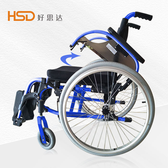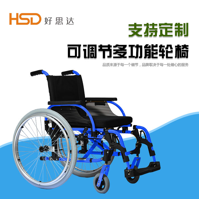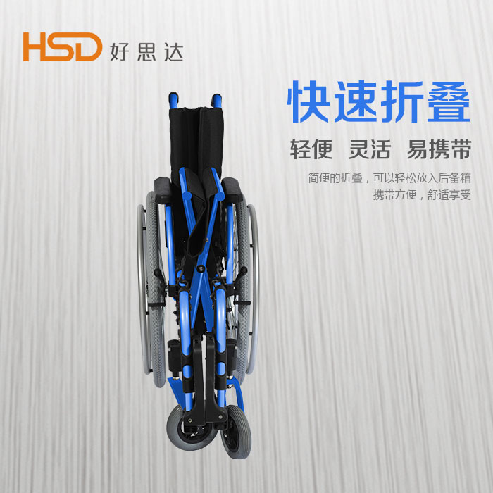 折叠式超轻铝合金车架,方便存储和运输;可上掀扶手,快拆脚踏;24寸充气快拆大轮;后置储物袋,合金电镀手圈,多部位可调节,可定制尺寸。总宽62cm,总高90cm,总长96cm,坐深42cm,坐高47cm,靠背高40cm,叠宽度34cm,净重17.5kg,载重100kg。座宽38/40/43/45CM,多色可选。适用于无力行走,或是在室内可以行走,外出时需要借助轮椅移动的偏瘫患者。