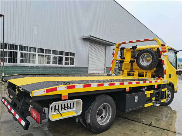 平板清障车 一拖二清障车,又称拖车,由底盘、起重装置、托举牵引装置、液压系统、电控系统、车体与工具箱等组成,具有起吊、拽拉和托举牵引等多项功能,适用于高速公路、城市道路的清障作业。 清障车按类别主要分为:拖吊连体型、拖吊分离型。