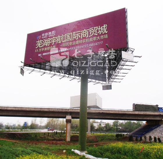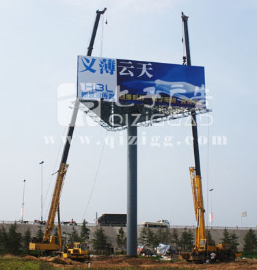 单立柱广告牌主要是指以独立基础高耸于道路两侧、机场、车站等人流较多场所的户外广告牌。随着我国改革开放的不断深入,经济建设得到了迅速的发展,伴随而起的广告业也日益兴旺。在单立柱广告牌的设计制作中,对其造型、规模及效益等方面的要求也不断提高,在满足广告效果的前提下,其结构与基础的安全性尤其重要。