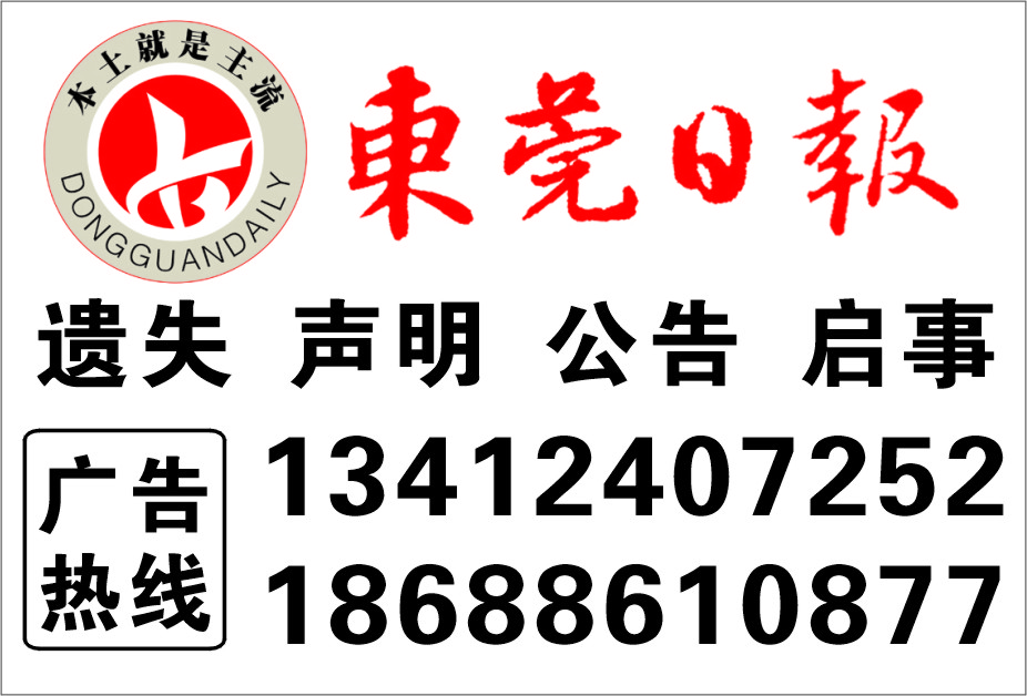 我司代理刊登东莞日报遗失声明公告启事广告;南方都市报东莞版遗失声明公告;东莞日报分类广告;东莞日报招聘广告等报纸媒体广告。