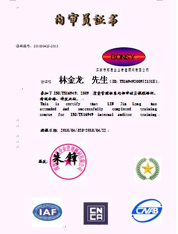 【培训证书】学员成功完成此课程后,可获颁发内审员证书