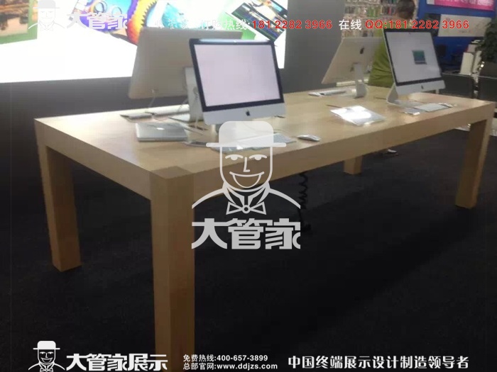 苹果体验店最新形象设计,苹果木纹体验桌,苹果官方收银台
