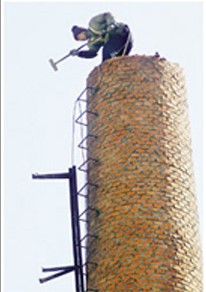 二、高空维修工程:各种烟囱、水塔、除尘器高空构筑物新建、安装、加固维修拆除、增高、倾斜校正、清灰、更换内衬、混凝土加固外壳滑模、烟囱安装平台、烟囱刷航标色环、烟囱装饰美化、钢结构防腐、安装避雷针、爬梯、护网、平台、设施、航标灯的更换及防腐保养,高空探伤检测。