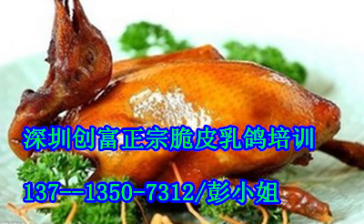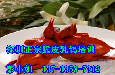 可是真正能教做光明红烧乳鸽的培训机构并不多,有些地方的教法是采用挂炉烤制的,但是各大酒楼的红烧乳鸽大都采用油炸的,包括深圳光明农场的红烧乳鸽也是采用油炸式的。所以单独教做光明红烧乳鸽的培训机构很少,教得好的更加难找了。最近有从江苏来的学员和从广西来的学员专门要求学习油炸式的红烧乳鸽,他们指明一定要学广东这种油炸的红烧乳鸽制作技术脆皮乳鸽 是广东菜中的一道传统名菜,随着菜品制作工艺地不断发展逐渐形成了熟炸、生炸和烤制三种制作方法。无论哪种方法,其制作过程都不算复杂,但若要达到理想的效果并不容易。