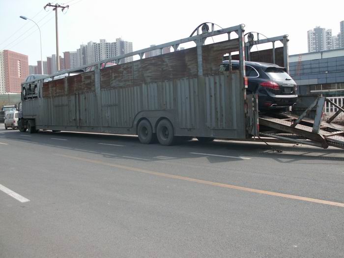 公司车辆为商品专用笼车,车长23米分上下两层,车型有封闭,半封闭型,可配载各类型轿车6-20辆,装卸车由具有五年以上经验的司机操作,车辆固定采用四轮定位技术,确保托运轿车绝对安全