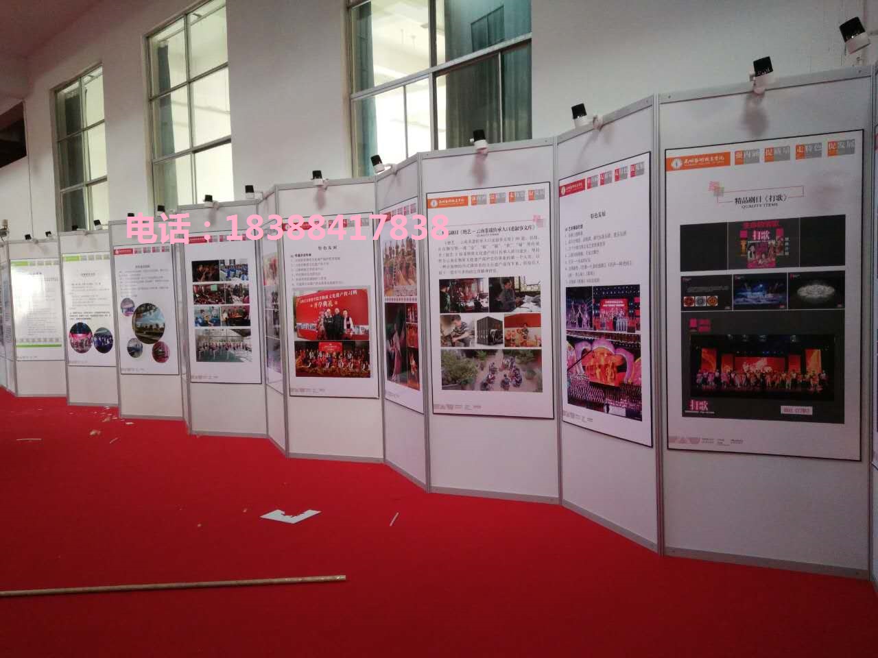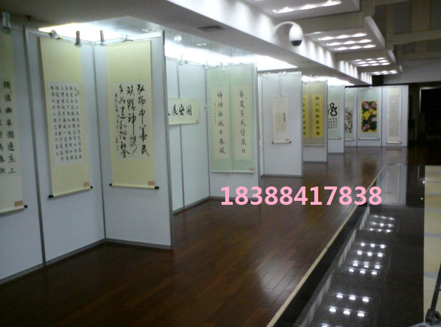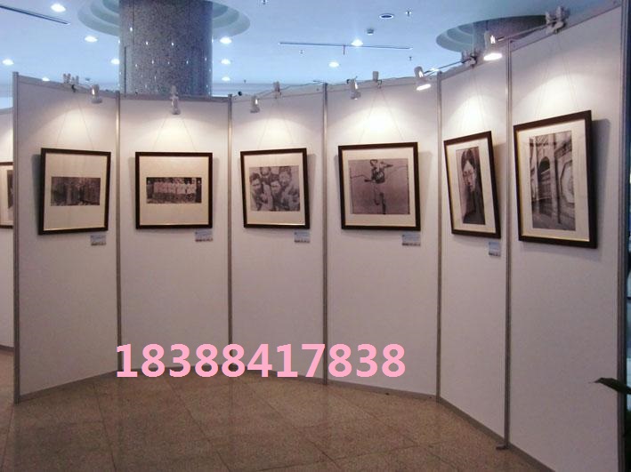 八棱柱展板 书画展板 广告宣传展板是采用国际通用标准而设计制作的,每张规格为宽1.0m*高2.5m,每张和每张组合可以无限延伸,配上八棱柱等展览专用铝材,可以组合成“一”字,“W”, “L”, “Z”, “+” , “v”, “x” 等很多种摆放的造型,主要器材为:八棱柱、扁铝,展板,三卡锁件等,其特点是装卸快捷,角度变换随意,易装易拆,便于运输,节省存储空间,只需一把扳手即可拆装自如。适用于画展,宣传,摊位,背景,围挡,等多种场合。