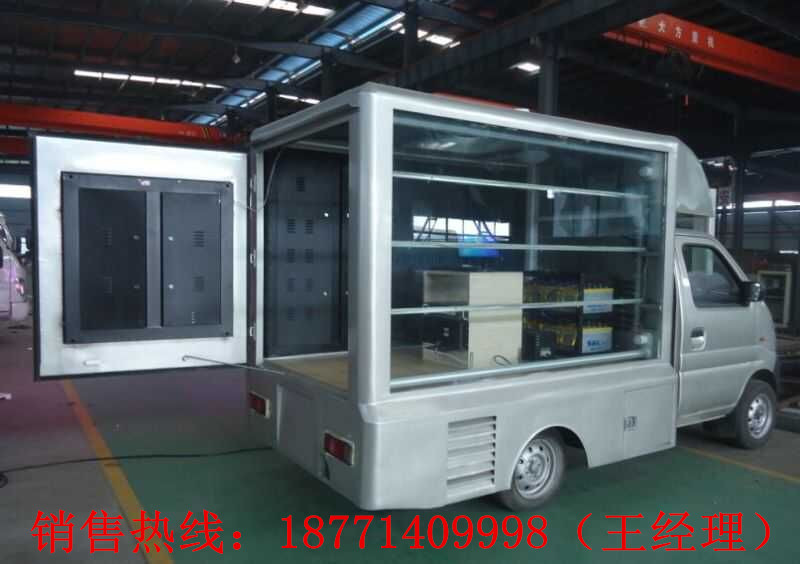 2.车厢左右两侧安装P8户外车载全彩屏,后门为单色屏幕。车厢后门为上翻式气弹簧门或者侧开门,门上安装有单彩屏、内藏式门锁,踏梯;车厢下方加装固定型裙板,并设有工具箱;30米外接电源线。