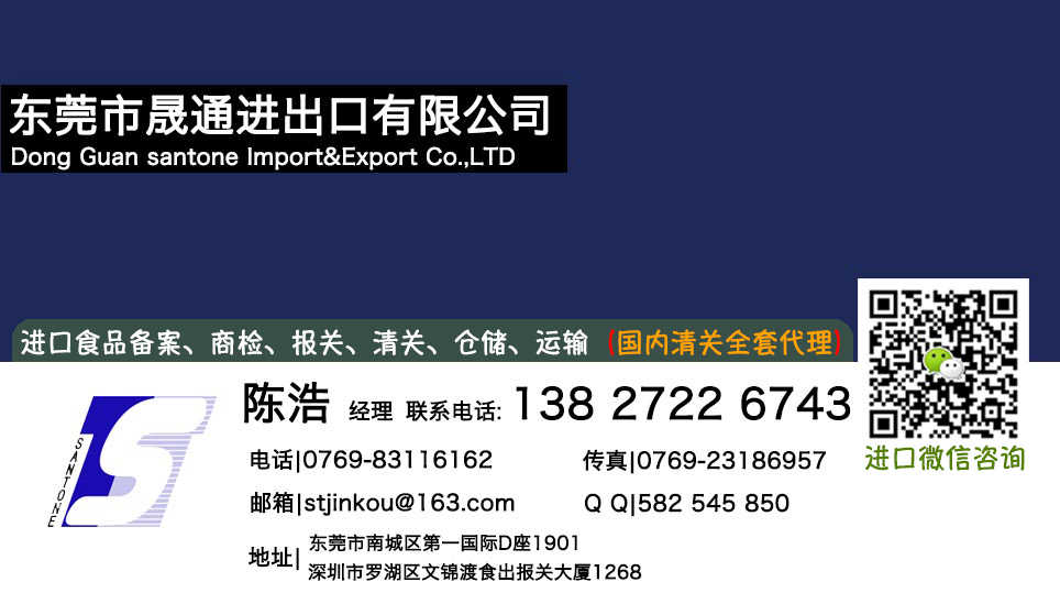深圳食品进口报关代理公司13827226743(JACKY)具有进出口贸易经营权、进口食品经营许可证、进口预包装食品经营许可证,已在海关和商检局备案食品进口资质,具备进口各种食品、食用油资格。专注食品进口报关代理、橄榄油、啤酒、饮料进口报关代理,经营食品进口清关13