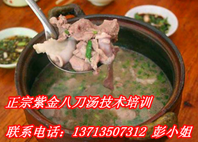 1. 紫金八刀汤现场培训学习,学费1080元,包含技术转让、教学材料、食宿、技术升级、增值服务等全部费用。培训时间 随到随学,2-3天左右,学会为止。