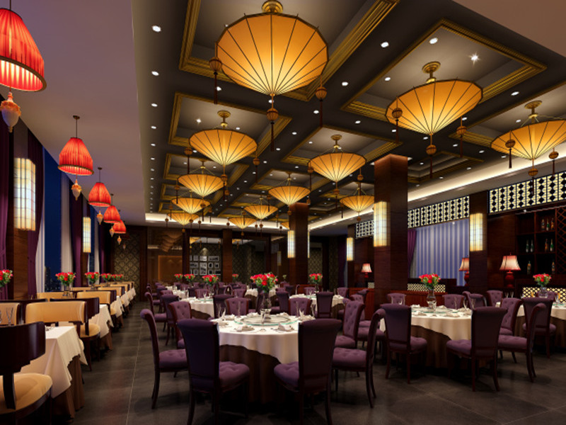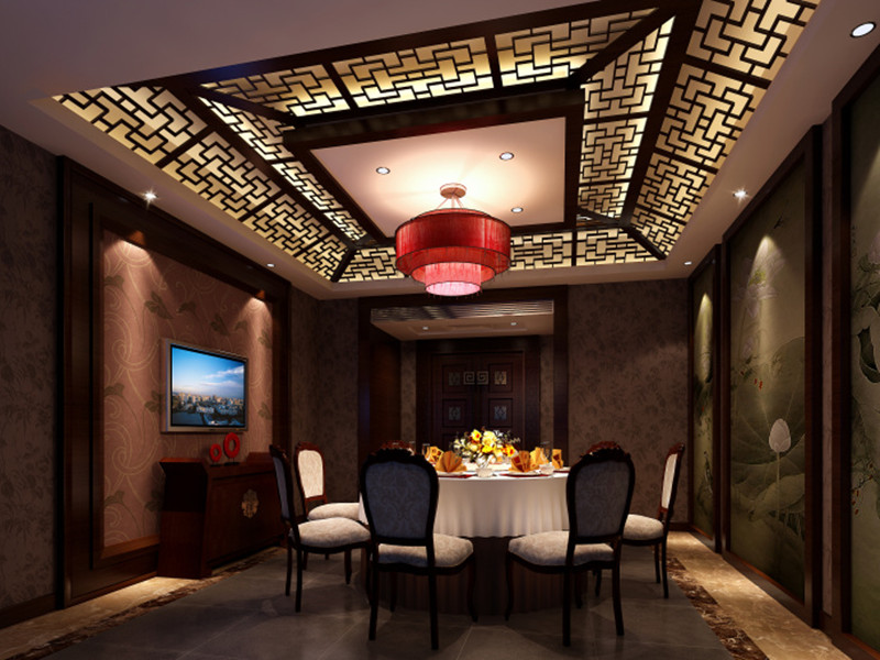 三:材料选购,在中式风格中我们要选用质量好的材料,酒楼面积一般都是比较大的。材料质量差了,整个空间看起来就会很差劲。我们要让顾客一进来就感觉眼前一亮,要有视觉冲击力。这些都是通过灯饰,灯光,家具材料质感,色彩等整体效果来呈现的。很多时候缺一不可。