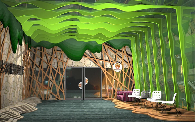 主题餐厅设计我们需要从几个方面入手:一,我们先要确定开一个什么样的主题餐厅:比如,动漫,鲜花,儿童,森林,海洋,或以回忆过去,展望未来等。总要有一个中心思想,这样才能围绕标题继续走下去。